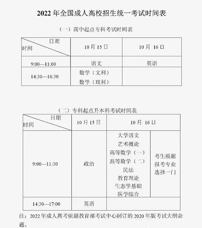 ● 文史类:政治、外语、大学语文 ● 艺术类:政治、外语、艺术概论 ● 理工类:政治、外语、高等数学(一) ● 经济管理:政治、外语、高等数学(二) ● 法学类:政治、外语、民法 ● 教育学类:政治、外语、教育理论 ● 农学类:政治、外语、生态学基础 ● 医学类:政治、外语、医学综合 所有统考科目每科试题满分均为150分。 考试科目(如有变化,按教育部最新文件精神执行)