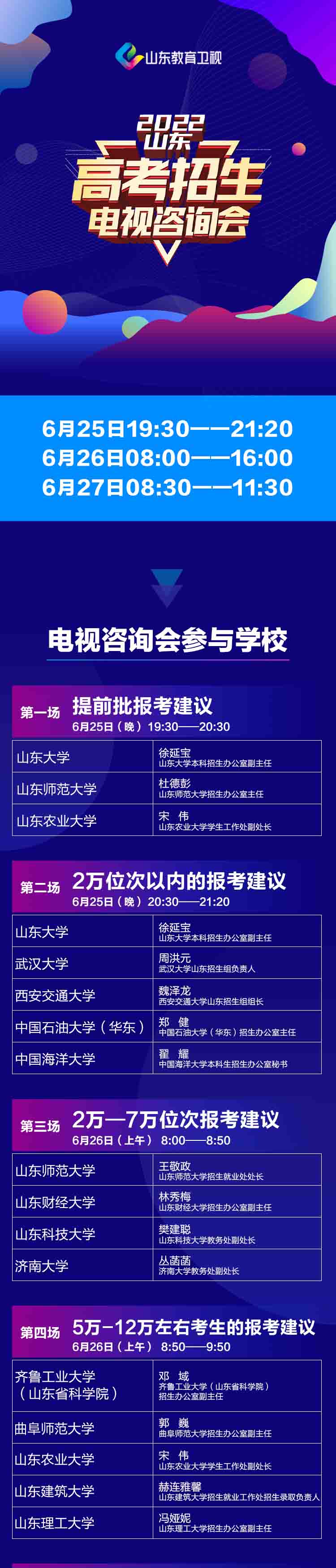 2022年夏季高考成绩将于6月26日前公布,山东教育卫视将举办“2022山东高考招生电视咨询会”,邀请高考权威解读专家、高校招生负责人做客直播间,针对不同位次的考生给出报考建议,面对面为考生和家长指点迷津。考生和家长可以通过电视端和网络端及时关注节目!